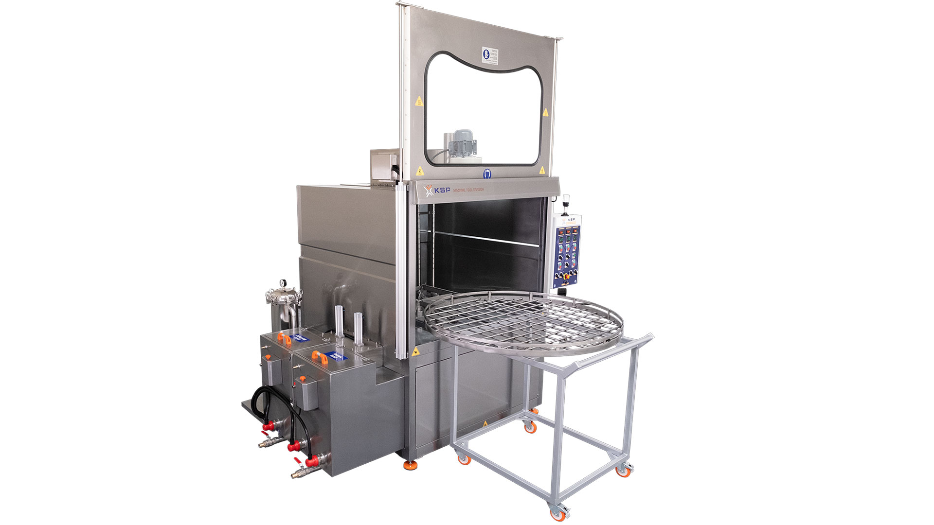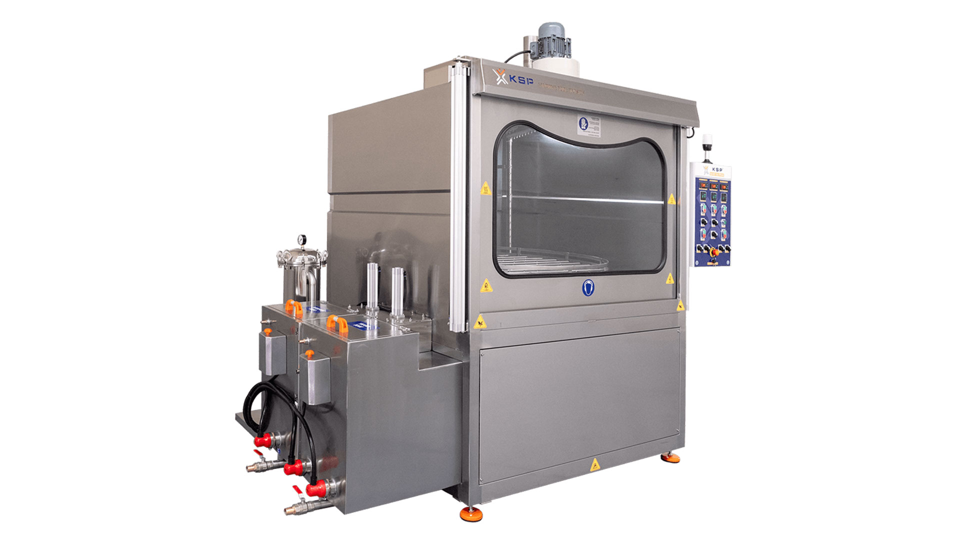 Разработанная компанией KSP Machine моечная система серии Purge XLarge с вращающейся корзиной обеспечивает высококачественную очистку деталей с помощью мойки под высоким давлением моющего раствора во вращающейся корзине внутри закрытой камеры. Система рециркуляции и передовая технология фильтрации обеспечивают эффективное использование воды, моющего средства и энергии, предлагая надёжное решение для удаления грязи, масла и стружки перед ультразвуковой мойкой, окраской или обработкой поверхности.