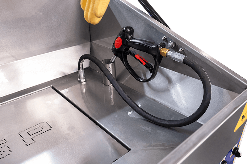 Мощный насос и сильный поток воды обеспечивают идеальную очистку даже самых стойких загрязнений. Подогретая вода повышает эффективность мойки, а изолированный бак минимизирует потери энергии. Световая система и воздушные ножи-скребки на смотровом окне позволяют оператору четко видеть детали и полностью контролировать процесс.