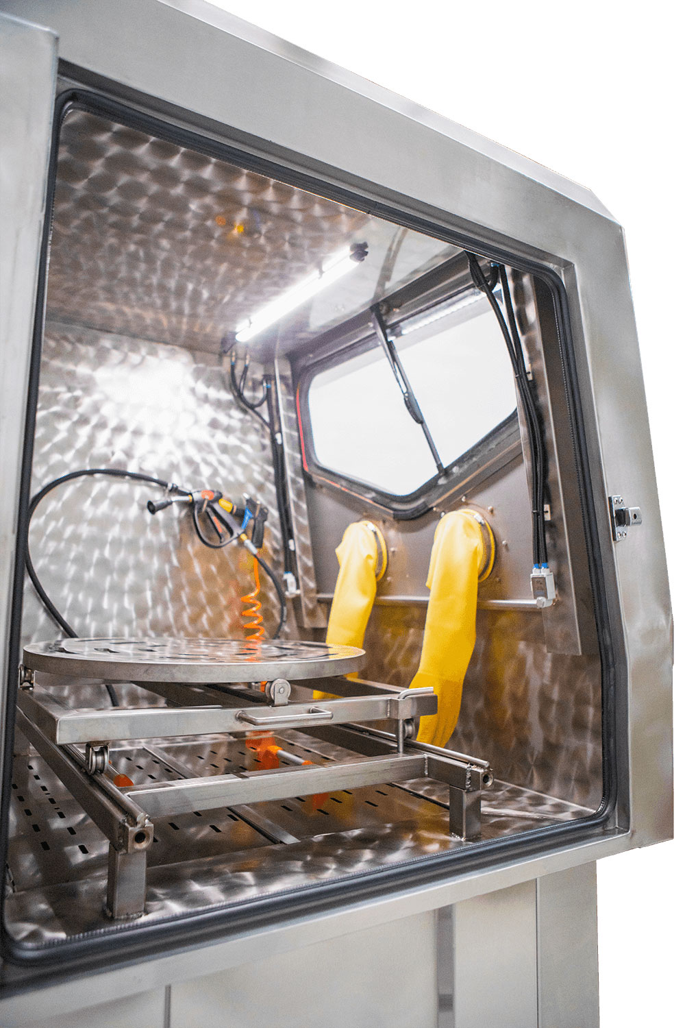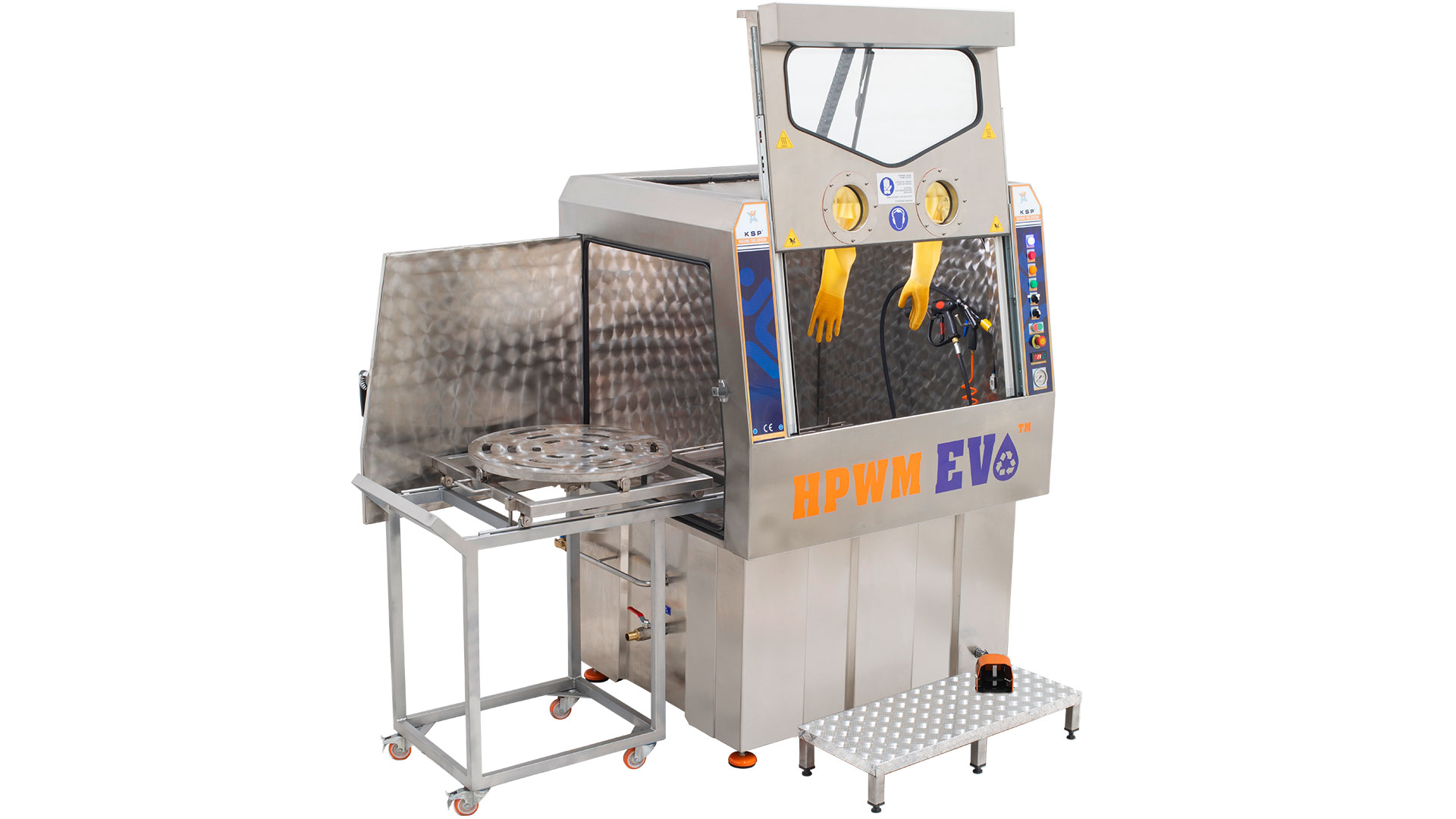 Разработанная компанией KSP Machine серия HPWM EVO предназначена для детальной очистки крупных и сложных деталей с использованием воды под высоким давлением и щеточных моечных узлов. Детали, размещенные на ротационной корзине, моются вручную или автоматически в зависимости от конфигурации, что обеспечивает контролируемую и безопасную работу при очистке тяжелых компонентов.