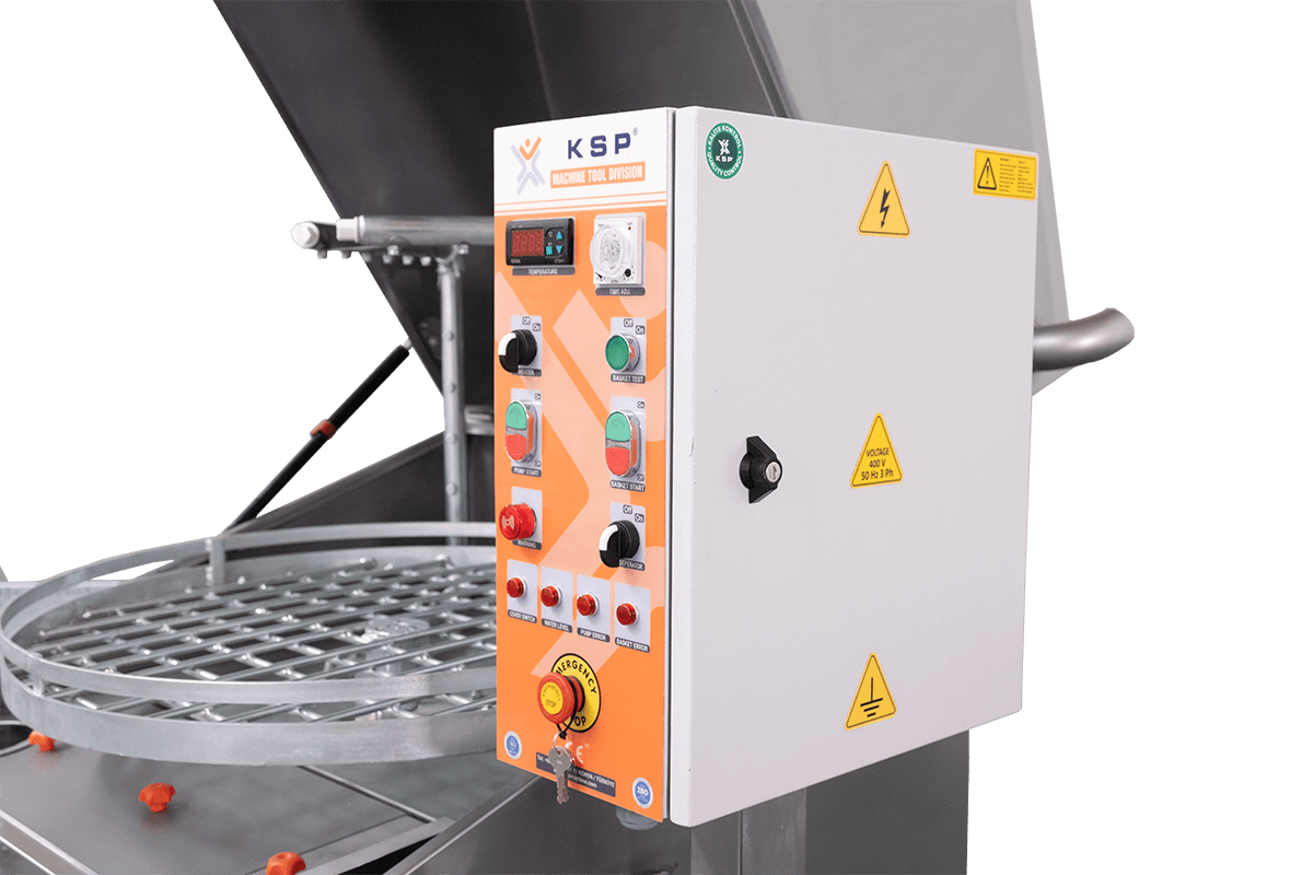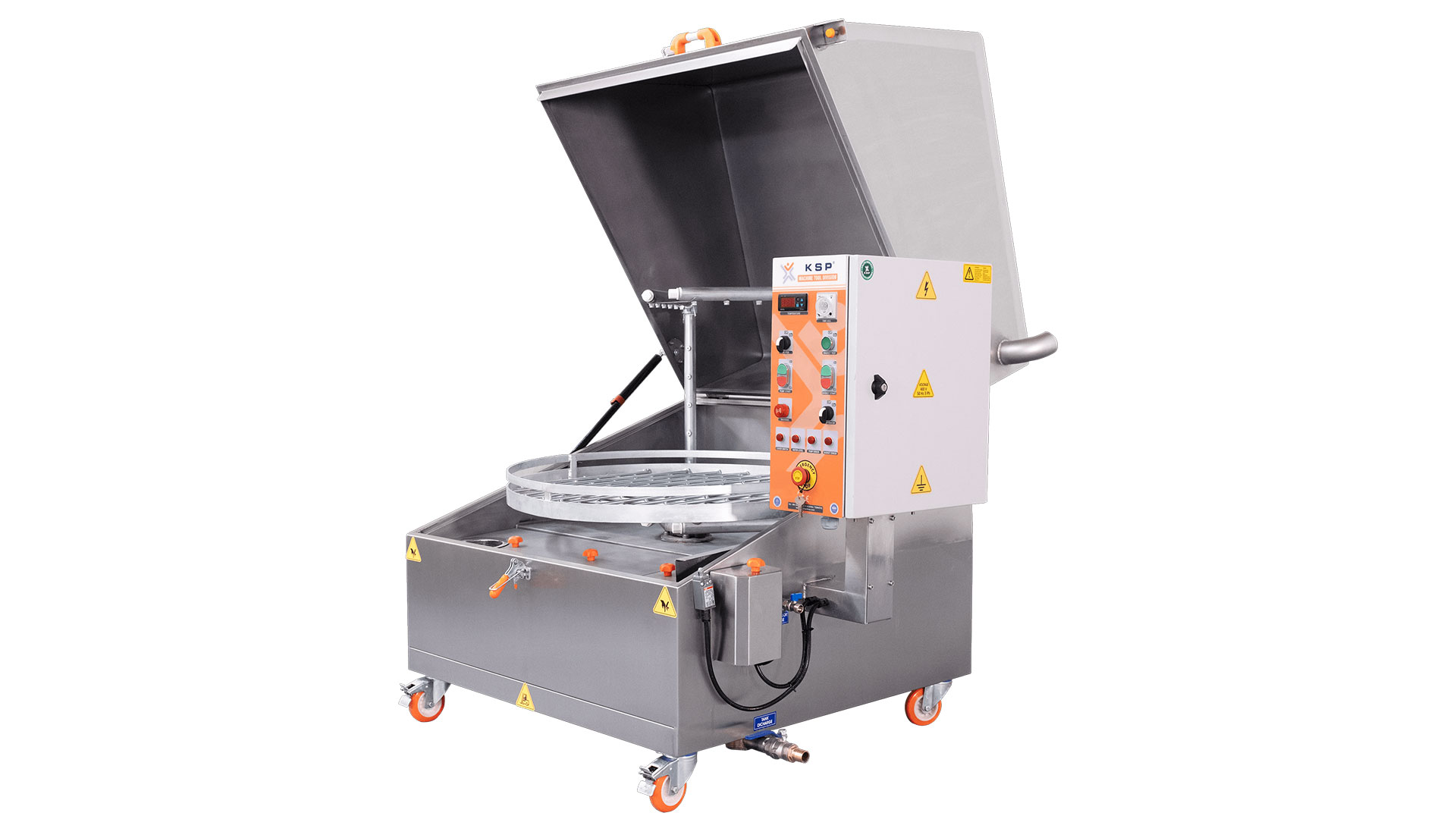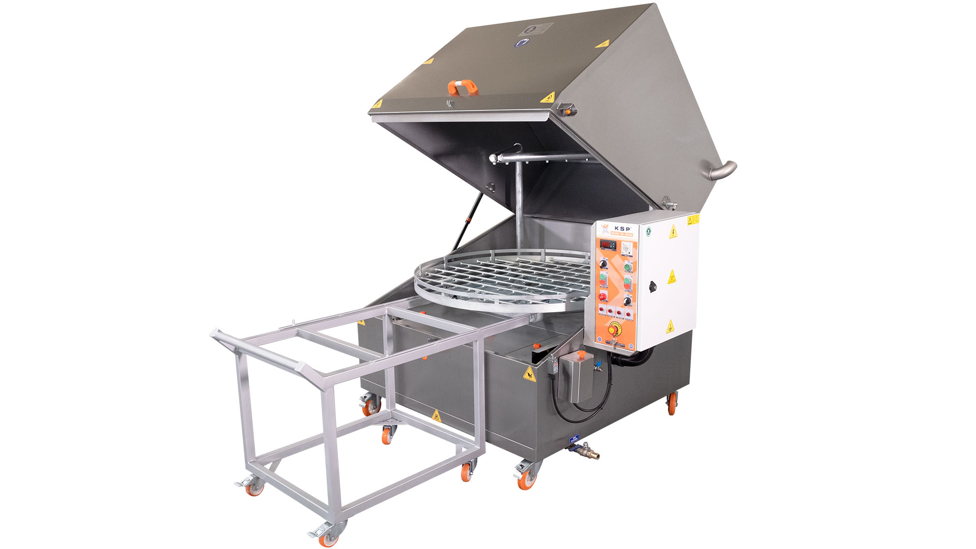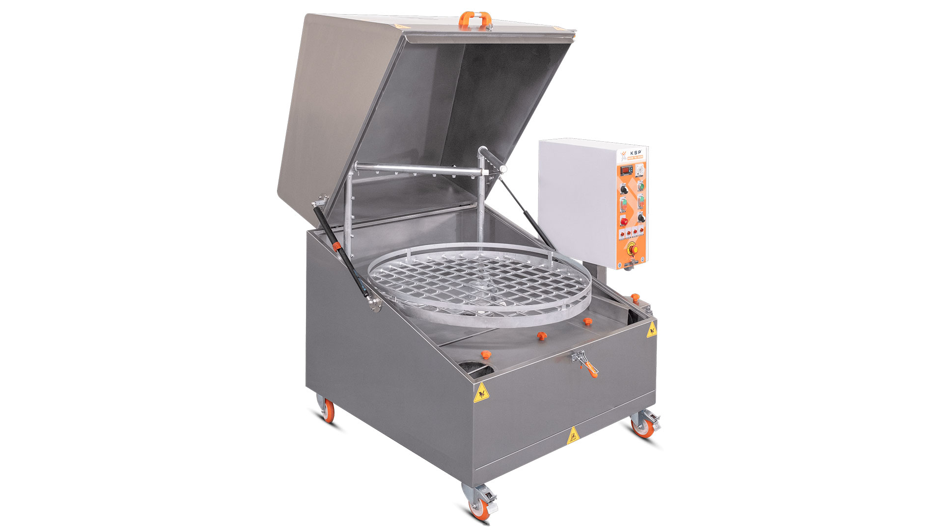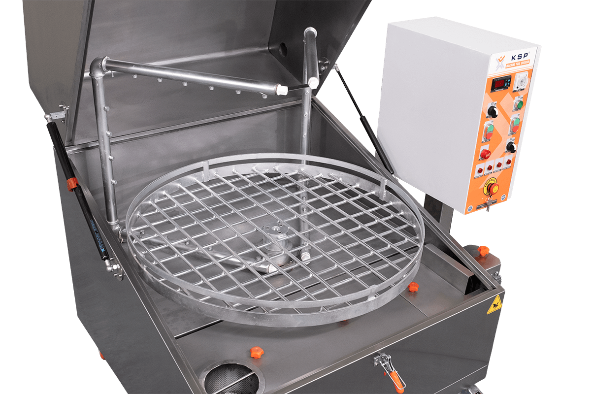 Разработанная компанией KSP Machine моечная система с вращающейся корзиной предназначена для высококачественной, быстрой и экономичной очистки мелких и средних деталей. Детали размещаются во вращающейся корзине и моются внутри закрытой камеры с использованием горячей моющей воды под высоким давлением. В процессе мойки встроенные распылительные форсунки направляют воду на поверхности деталей, обеспечивая эффективную очистку всех областей.